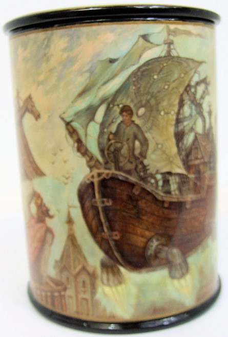 Hand Painted One of a Kind Russian Lacquer box by the talented artist Dmitriy Tipyakov. Throughout this box he portrays The tale of the Flying Ship.
