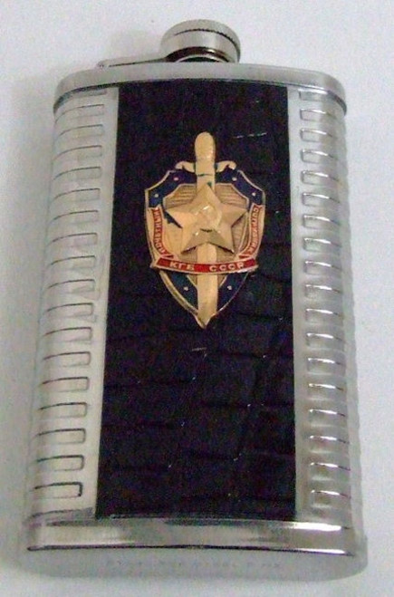 A russian military 6 oz stainless steel drinking flask. Ready for use. Great for ballgames or makes a great gift. The badge is the KGB emblem the CIA of the soviet union period. Made in Russia. Capacity: 6oz Material: stainless steel.