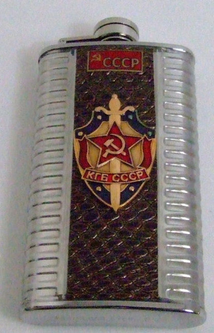 A russian military 6 oz stainless steel drinking flask style 4. Ready for use. Great for ballgames or makes a great gift. The badge is the KGB emblem the CIA of the soviet union period. Made in Russia. Capacity: 6oz Material: stainless steel.